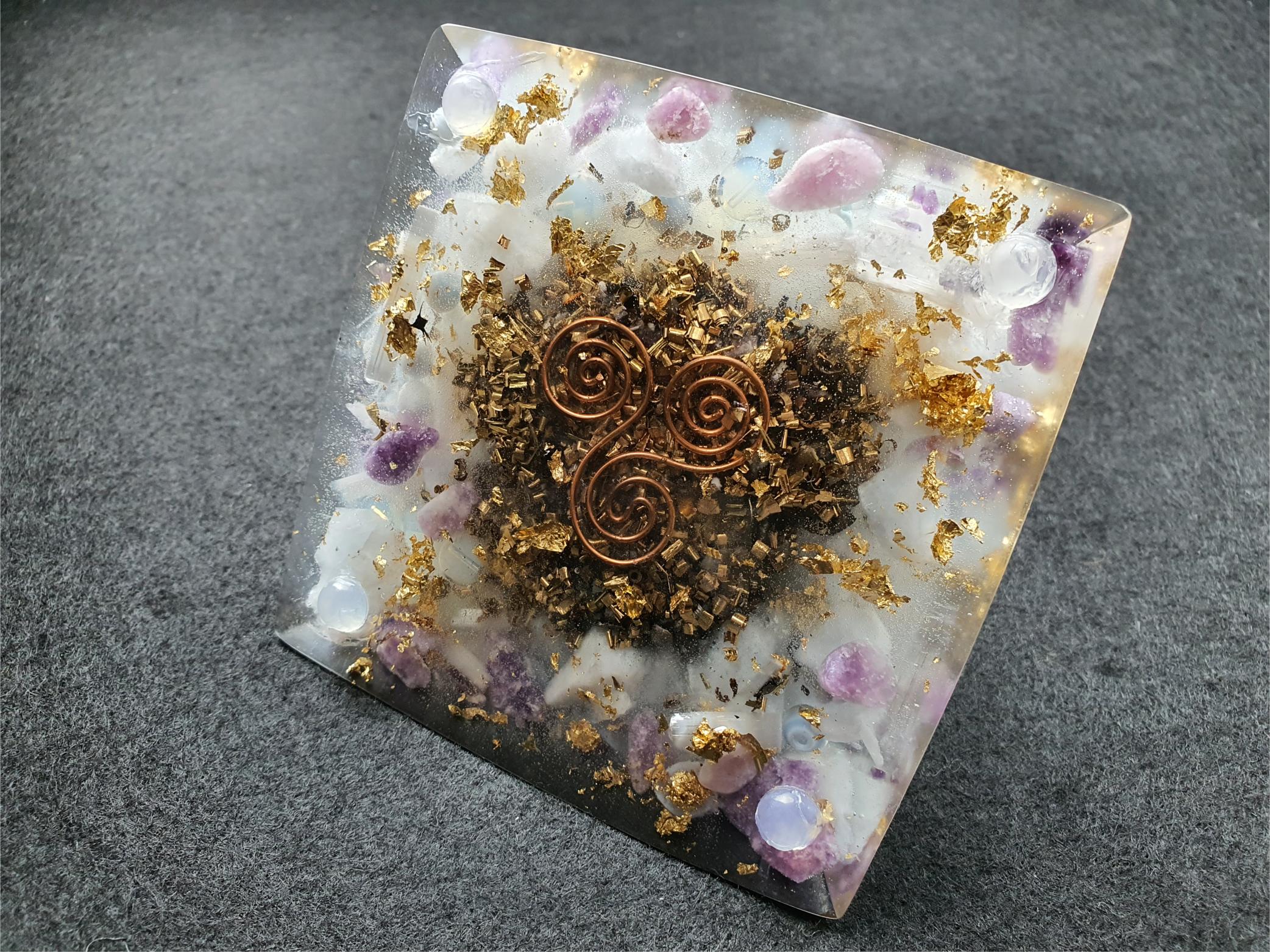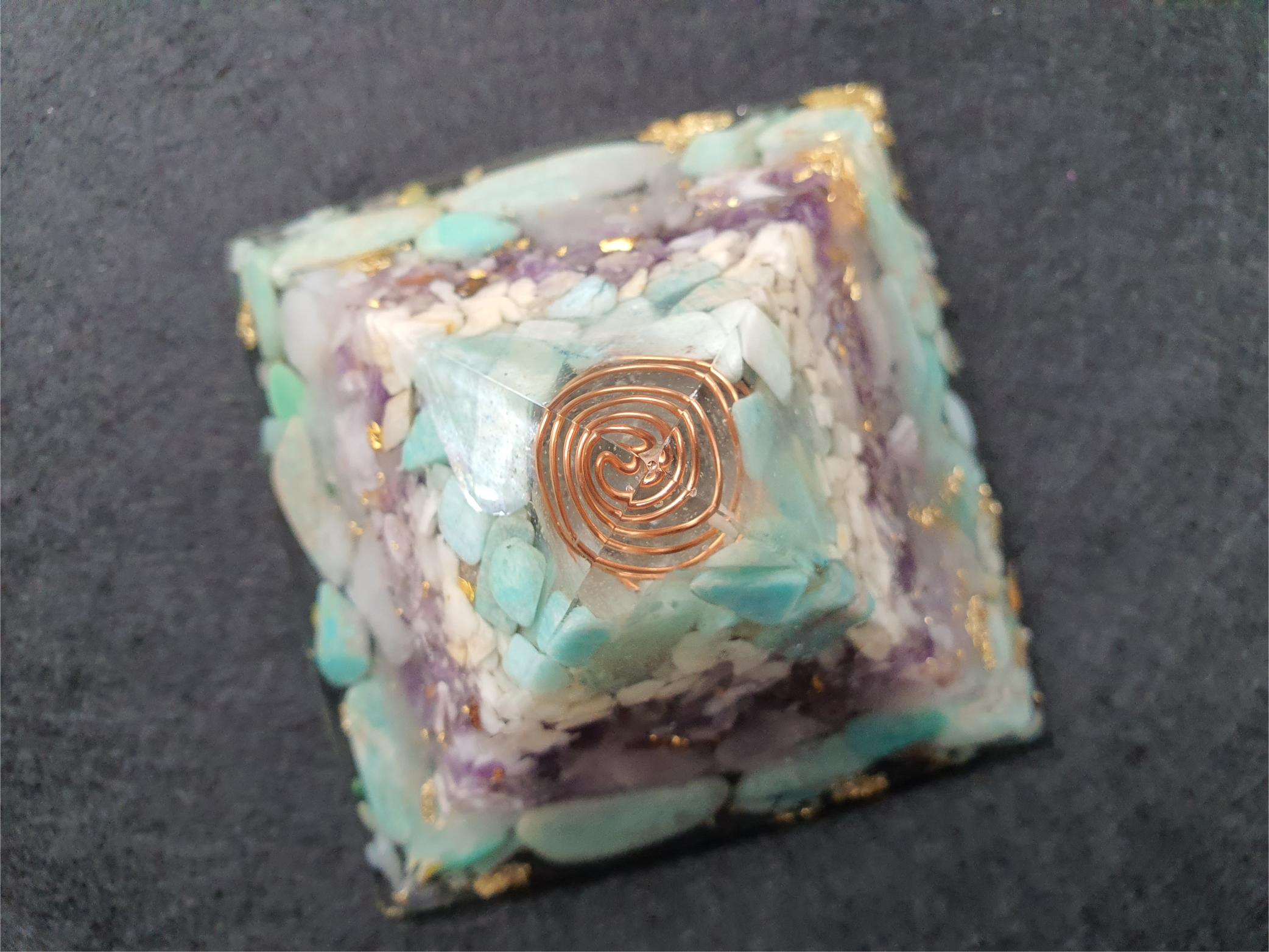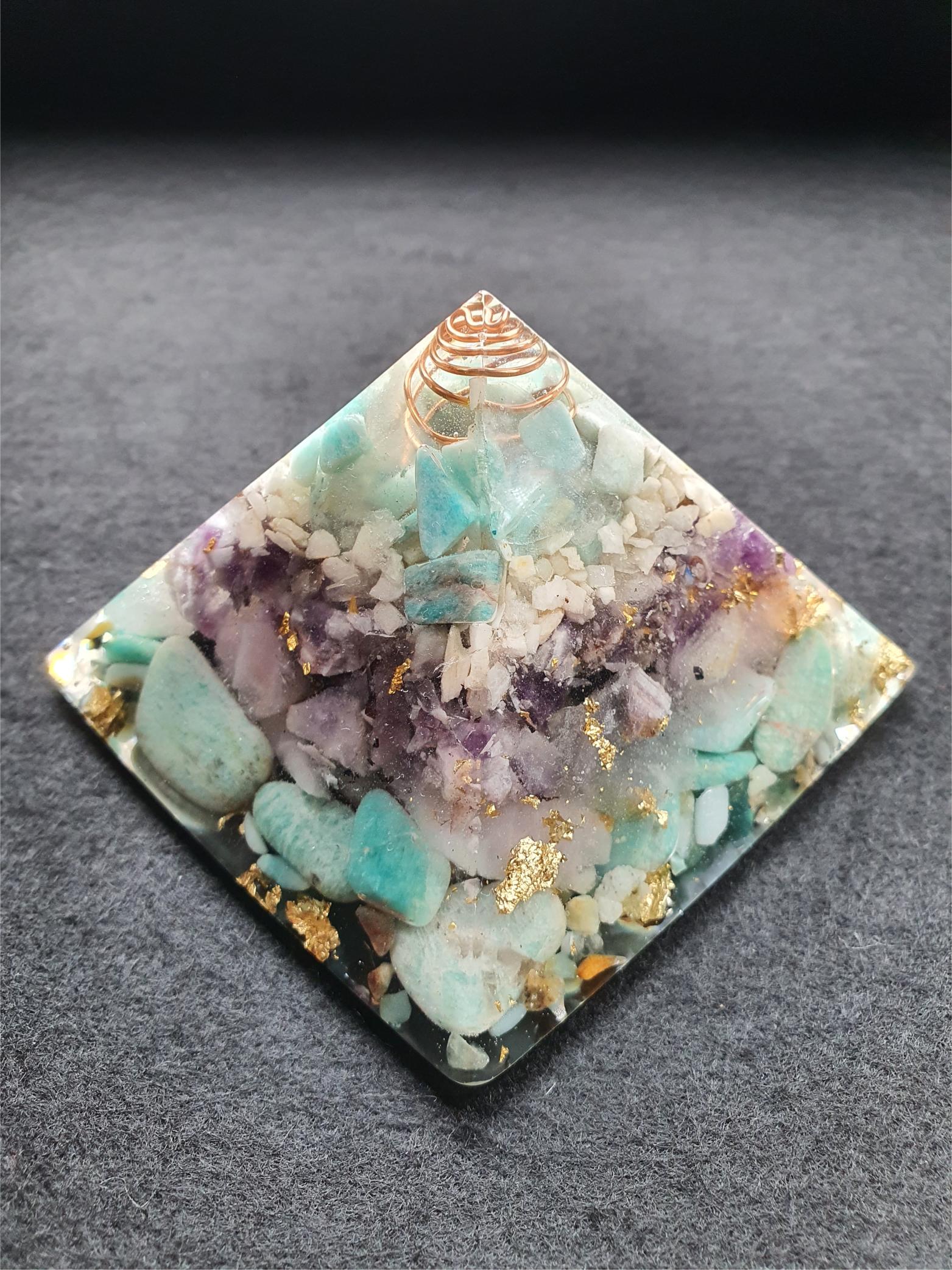 The result is a powerful and intriguing object used to generate positive energy and transform negative energy. This can lead to a sense of well-being and balance in the environment in which it is placed. Orgone Pyramids are known for their protective properties against harmful electromagnetic frequencies (EMFs). These rays are emitted by electronic devices, cell towers, and other sources.